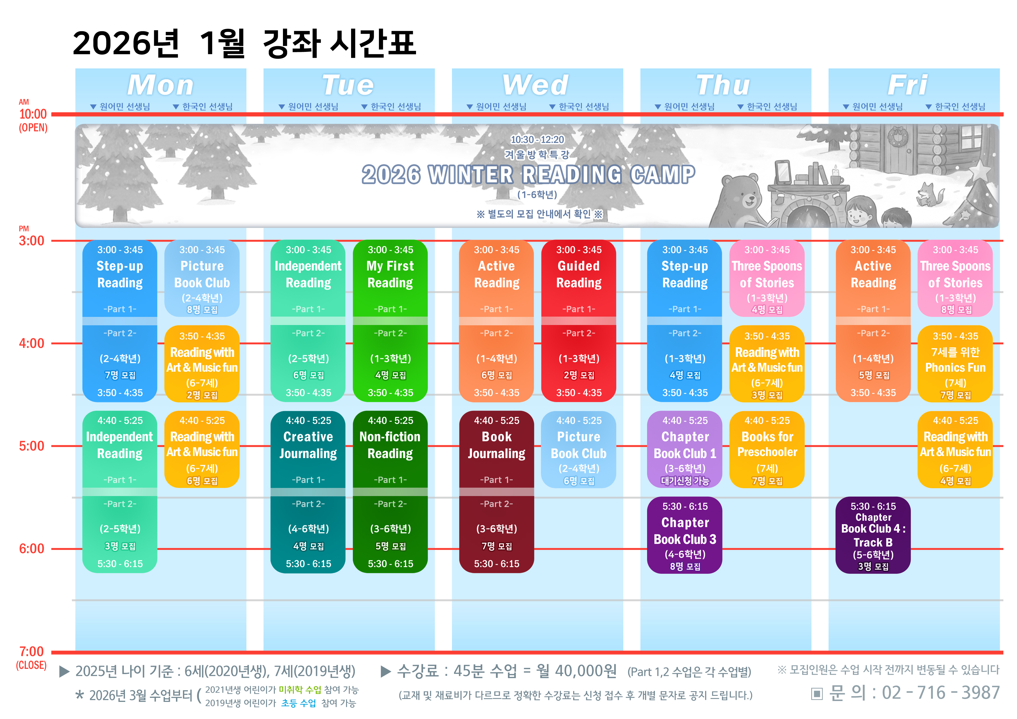 반드시 본 안내의 첨부파일<2026년 1월 강좌시간표 및 모집 안내사항.pdf>에서