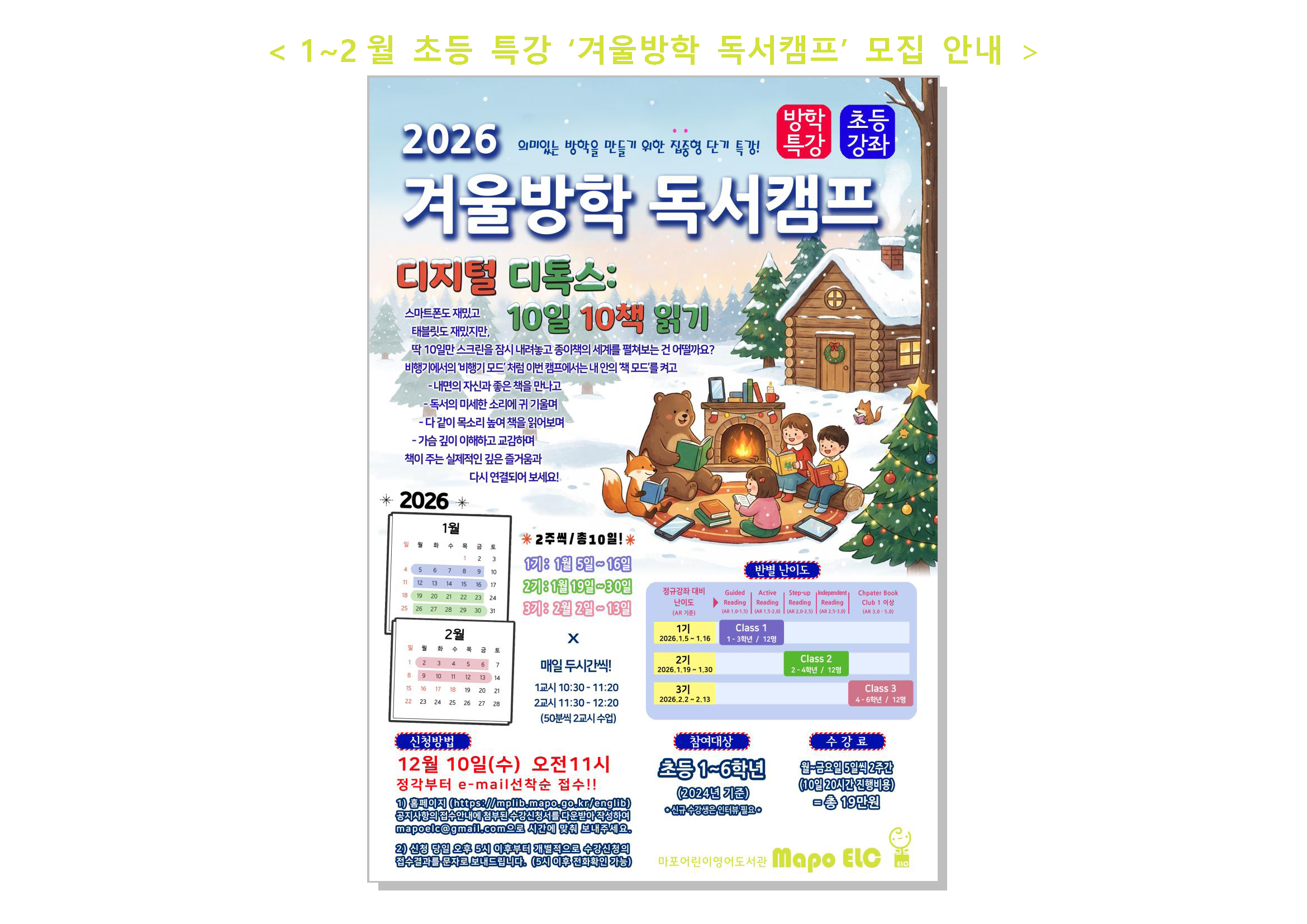 | 제목 | [마포/정규강좌] 2026년 1월 정규강좌 신규수강생 모집 안내 |