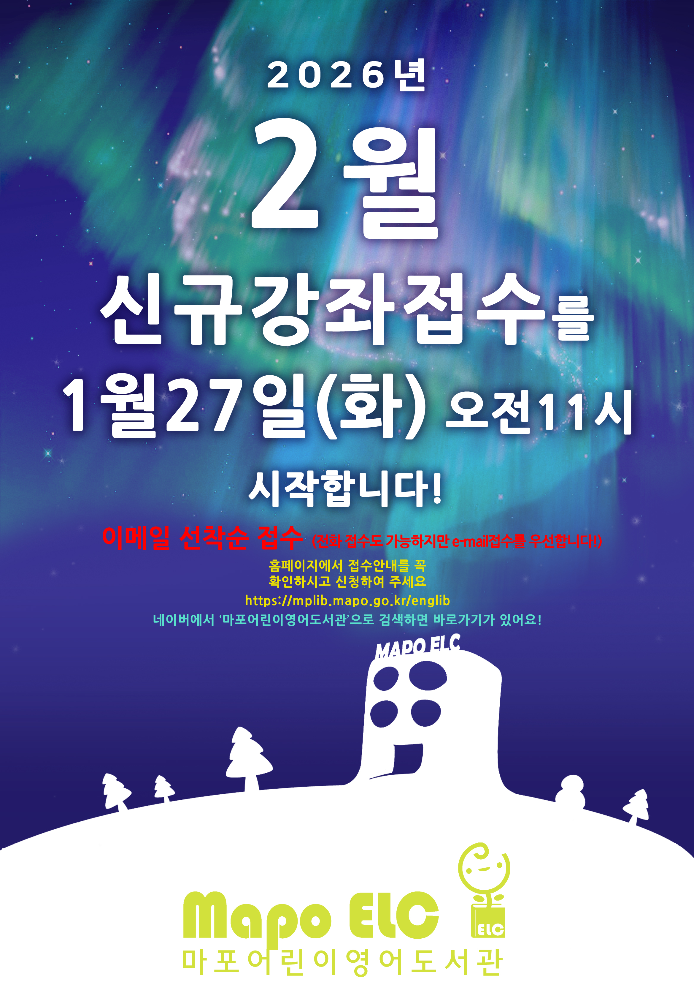 안녕하세요! 마포구 도화동에 있는 마포 어린이 영어 도서관입니다.
