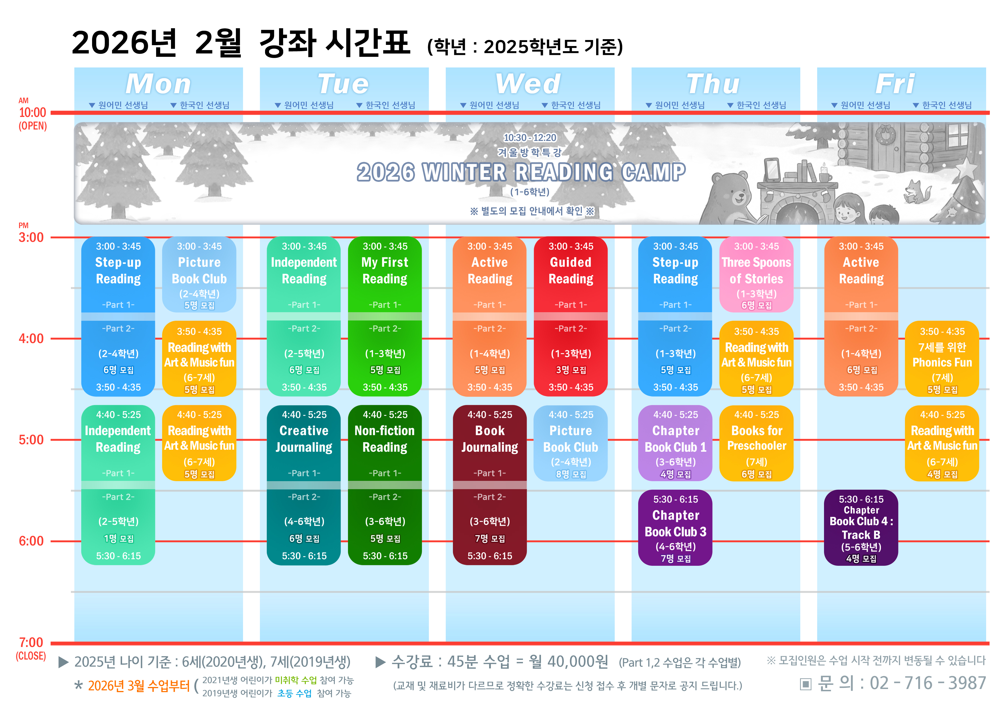 반드시 본 안내의 첨부파일<2026년 2월 강좌시간표 및 모집 안내사항.pdf>에서