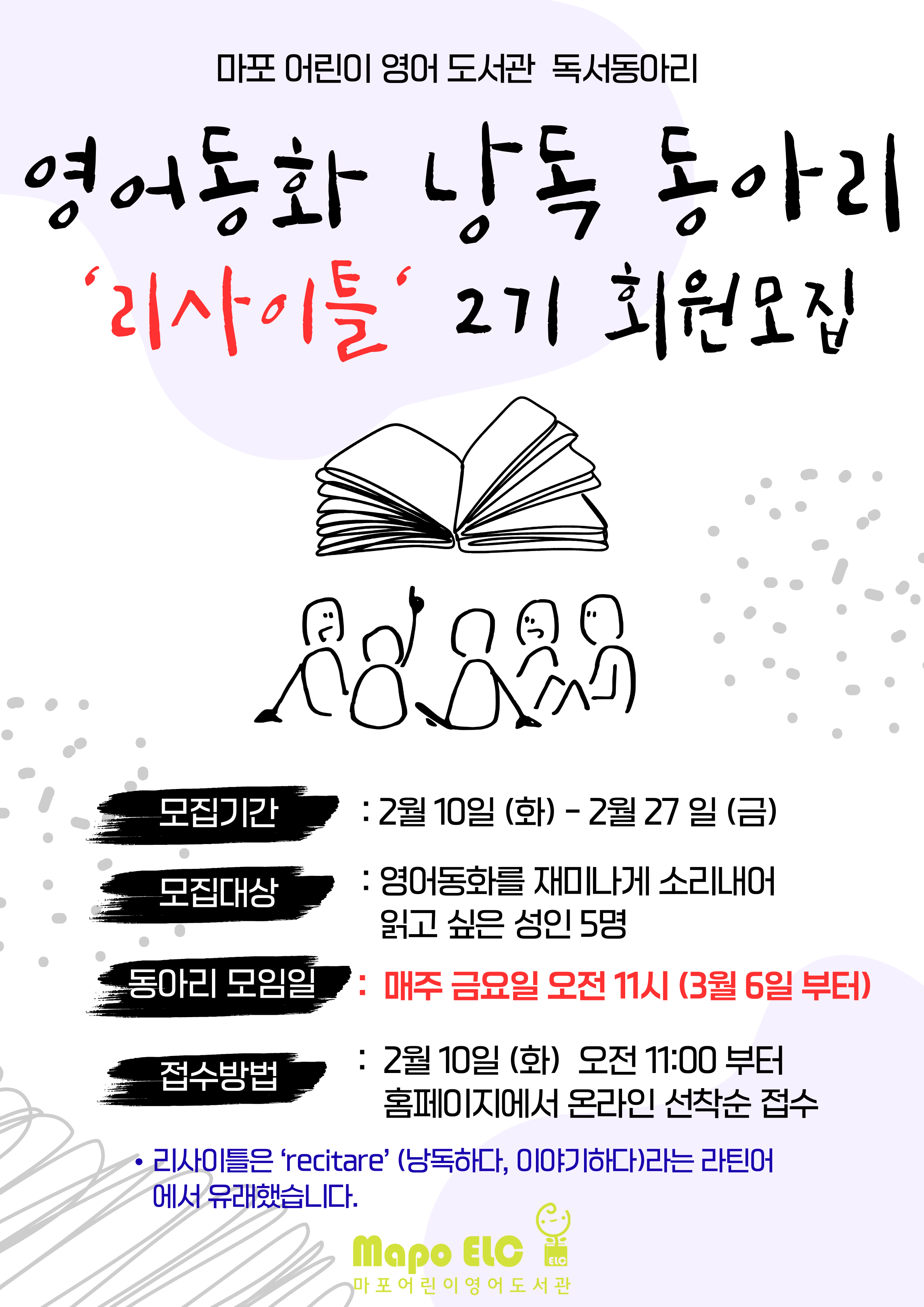 영어 동화 낭독 동아리의 회원을 모집합니다.