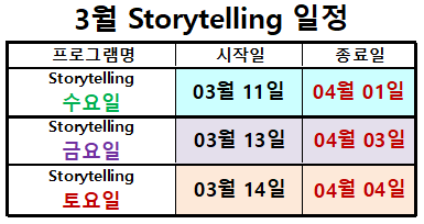 👉신청양식: "스토리텔링+요일+시간+이름+나이"