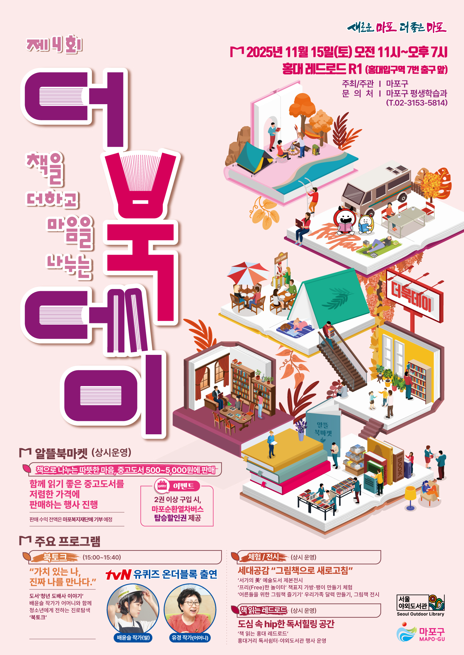 <더북데이> 오전 11시 ~ 오후 7시 홍대 레드로드 R1 (홍대입구역 7번 출구 앞) |