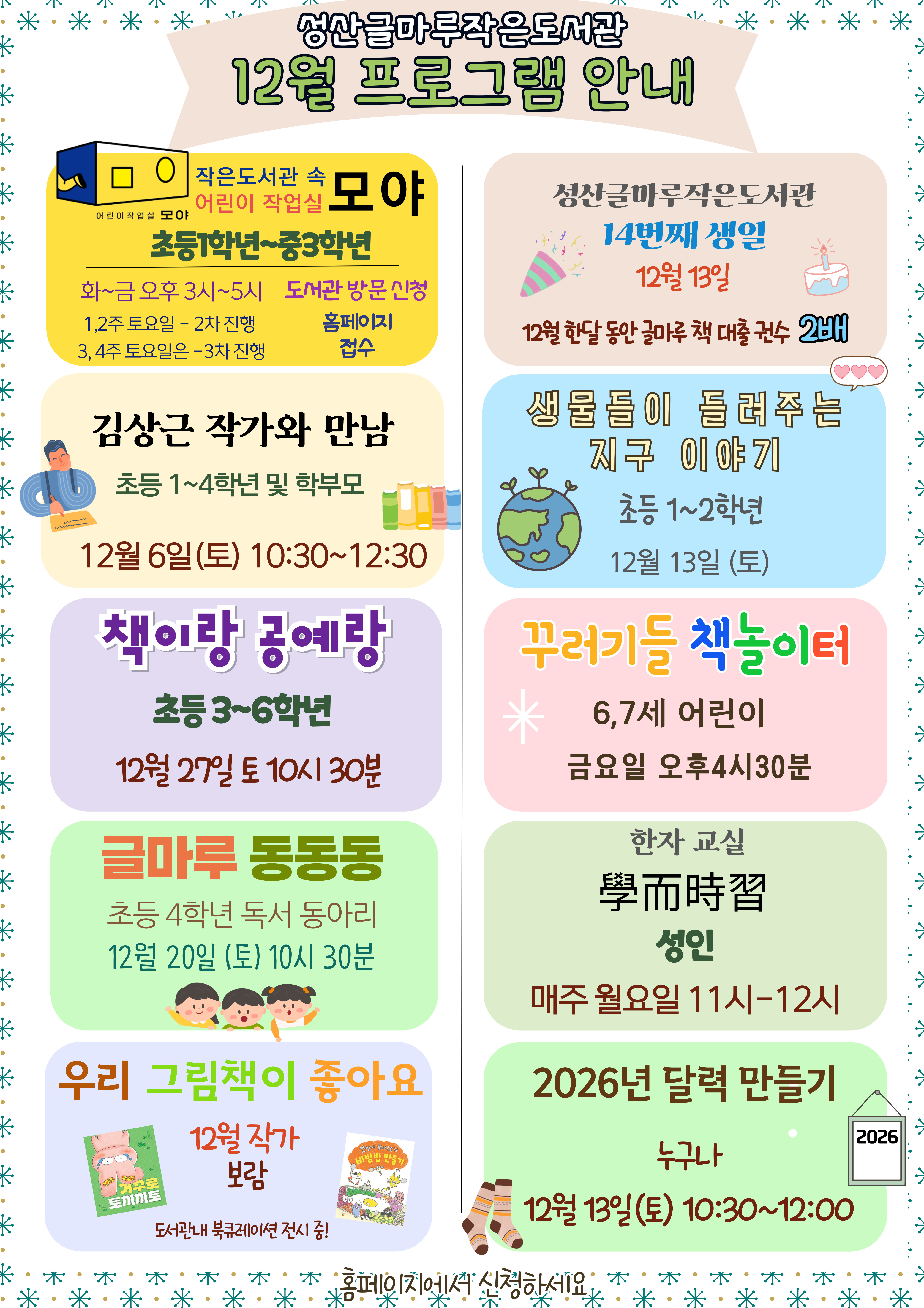 성산글마루작은도서관 12월 프로그램 안내문입니다.