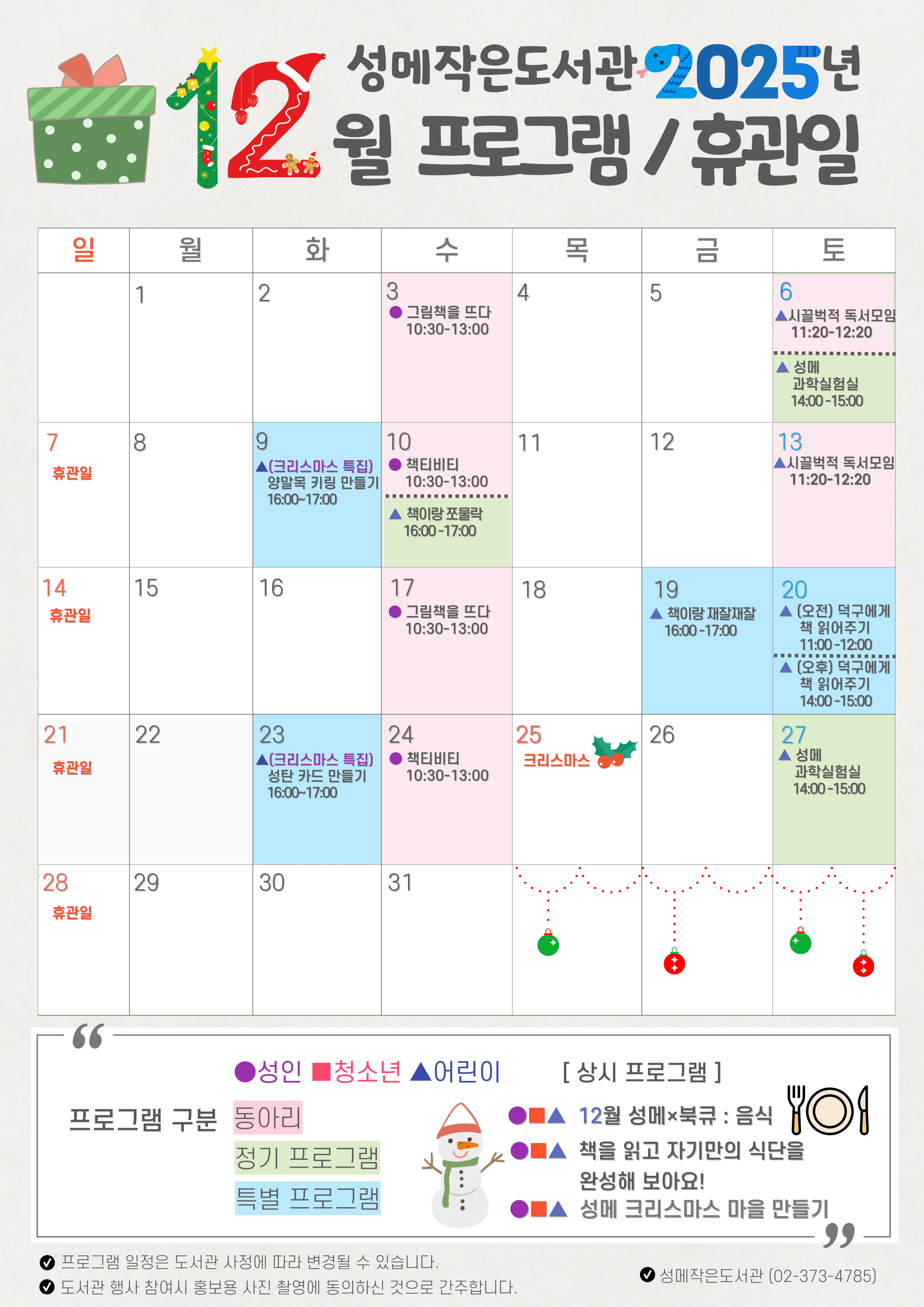 성메작은도서관 2025년 12월 프로그램 / 휴관일