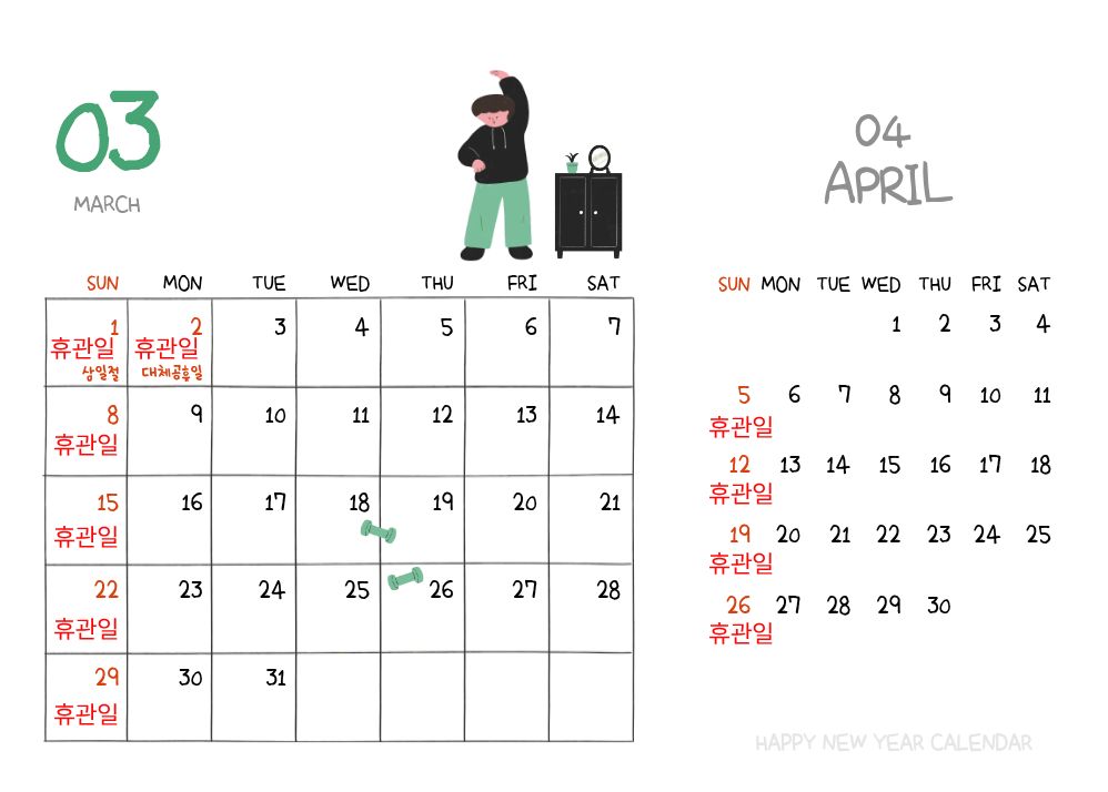 [늘푸른]휴관일 안내(3~4월)