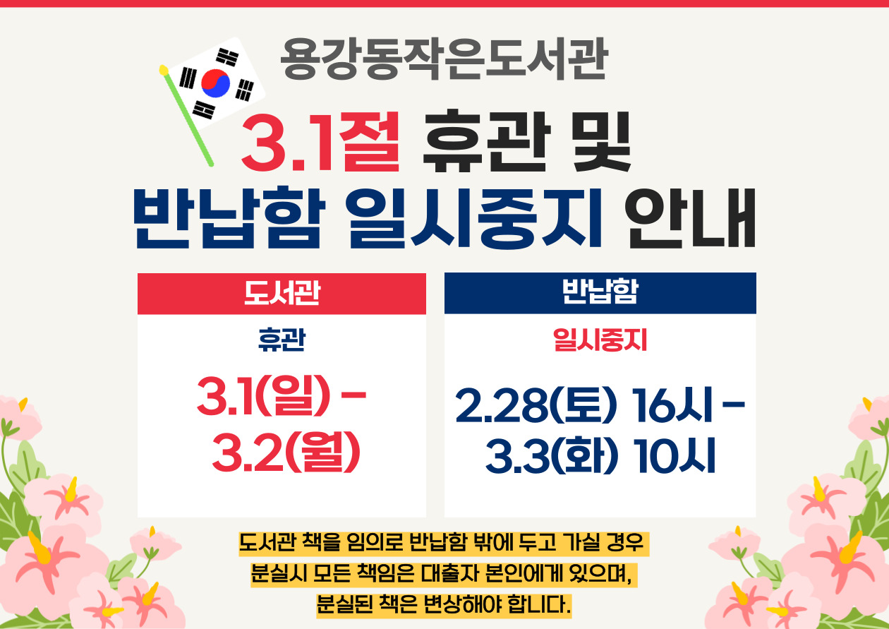 3.1절 휴관 및 반납함 일시중지 안내