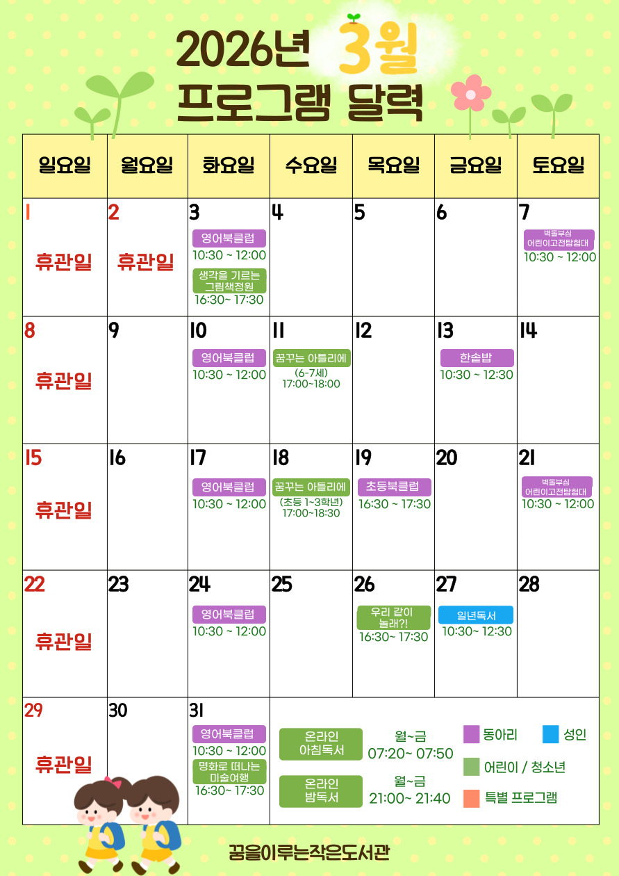 3월 3일 화요일, 16:30~17:30, 초등 1~2학년