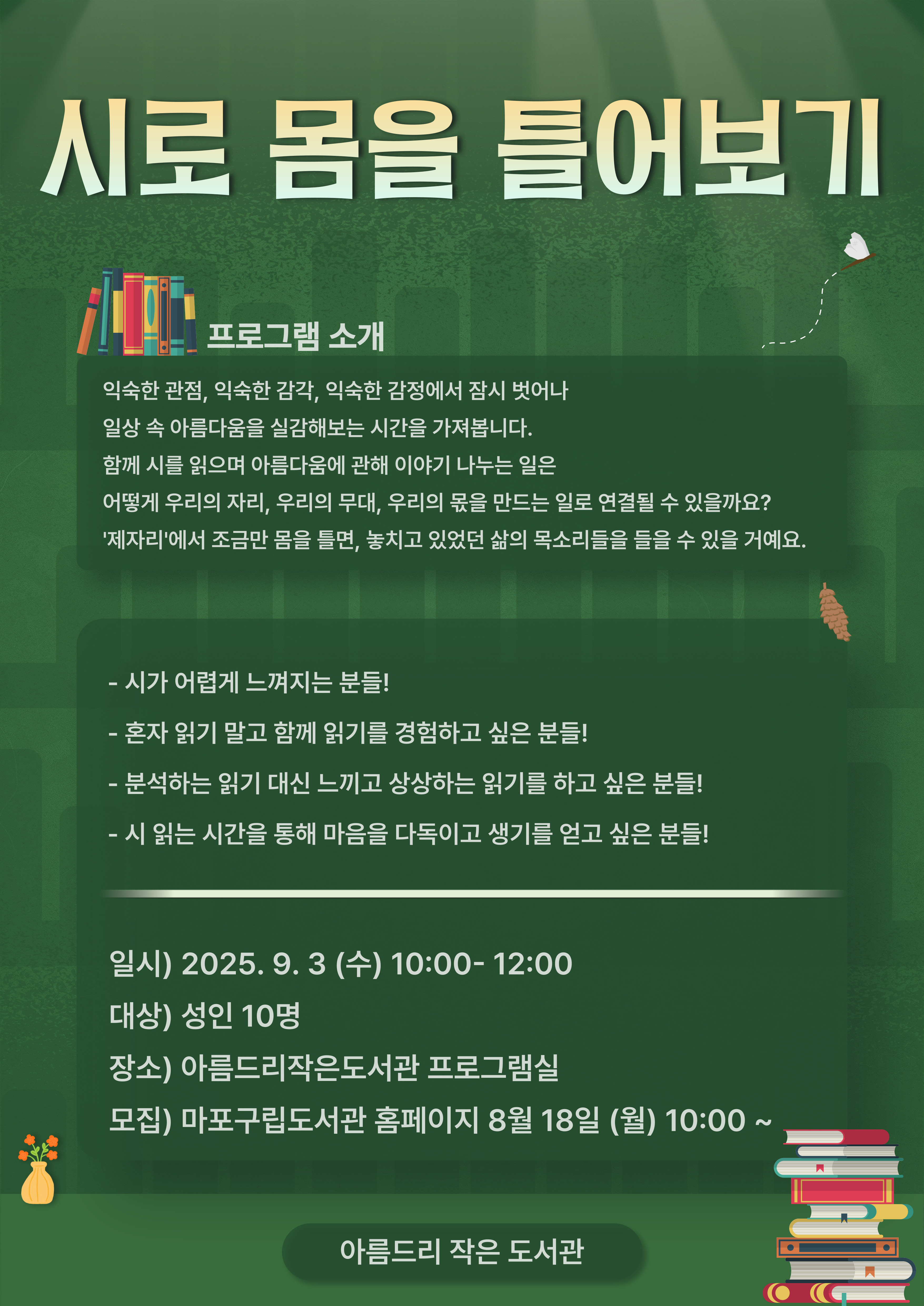 [시로 몸을 틀어보기] 프로그램 소개 익숙한 관점, 익숙한 감각, 익숙한 감정에서 잠시 벗어나