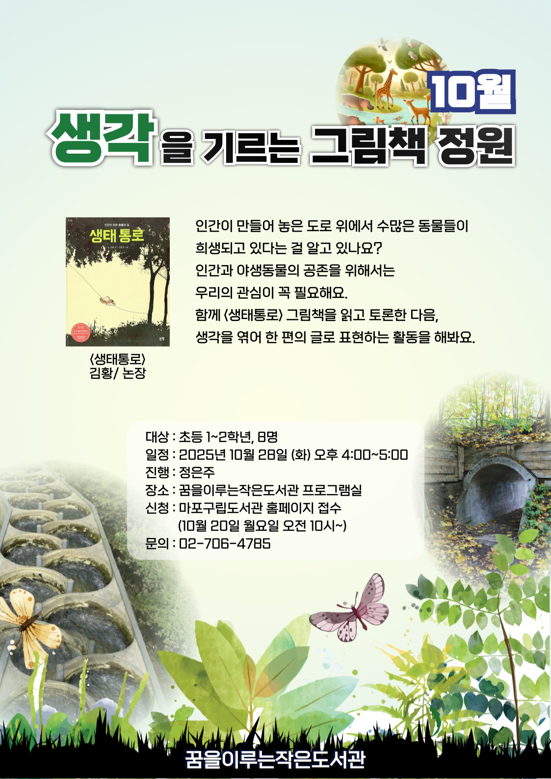 프로그램명 | [꿈을] 생각을 기르는 그림책 정원_10월 예정 | ||