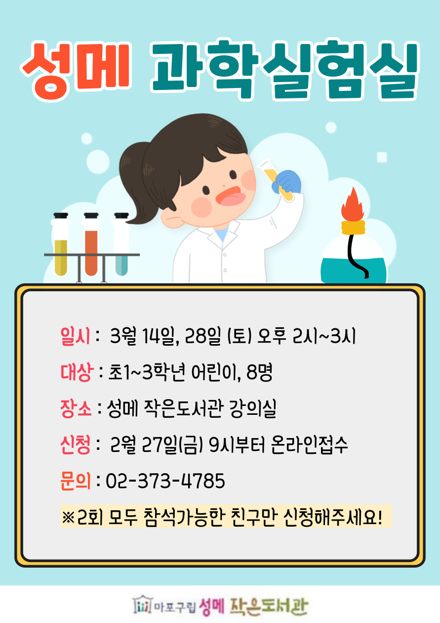 | 프로그램명 | [성메] 성메 과학실험실 (3월) 예정 | ||