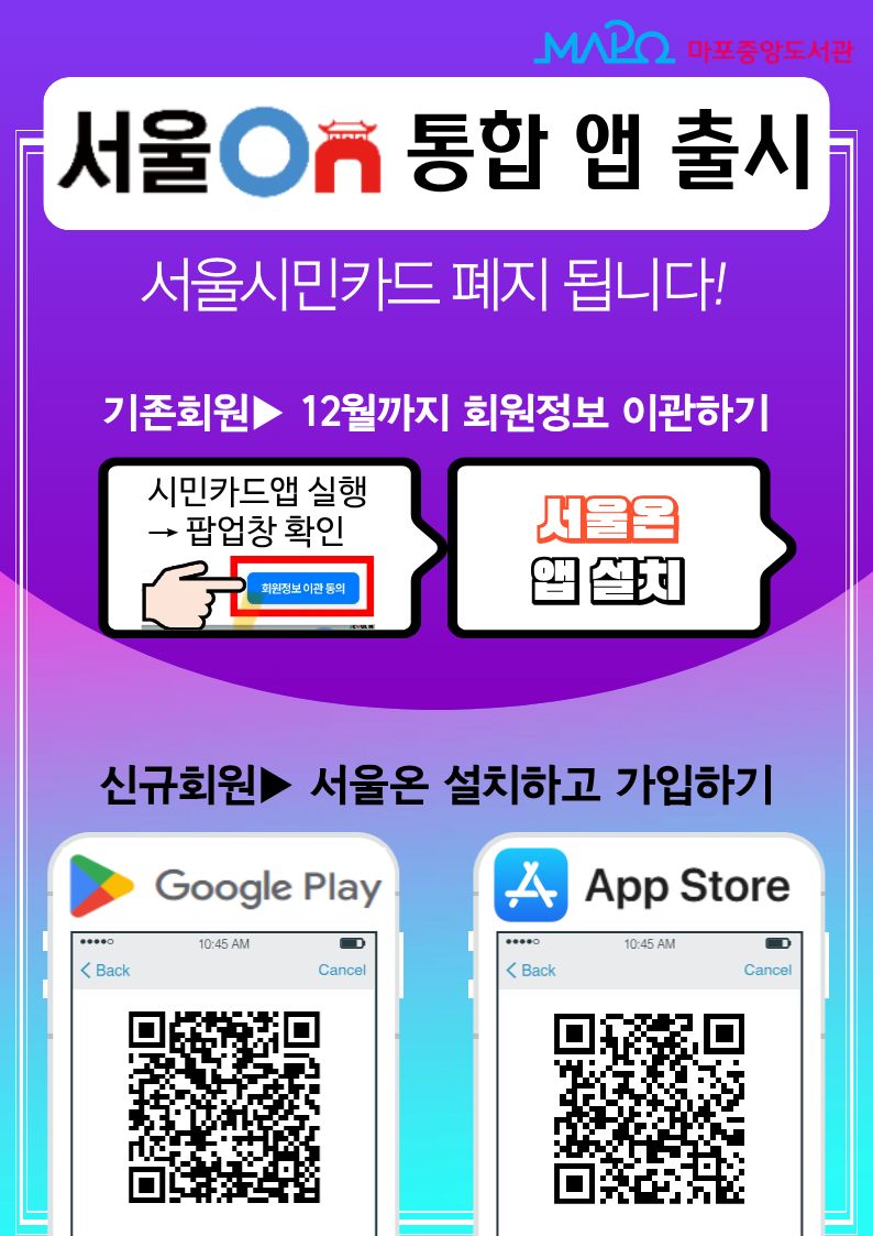 ○ 기존 시민카드 사용자는 팝업창을 통해 회원정보이관에 동의하시고 '서울온' 설치하시기 바랍니다.