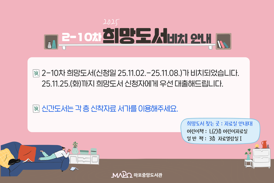 2025년 2-10차 희망도서 및 신간도서 비치 안내