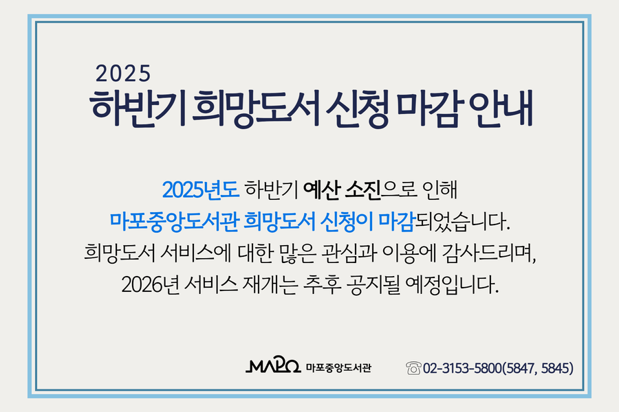 마포중앙도서관 희망도서 신청이 마감되었습니다.