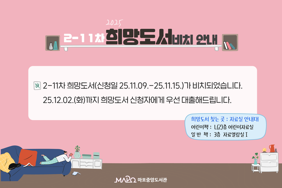 | 제목 | 2025년 2-11차 희망도서 비치 안내 |