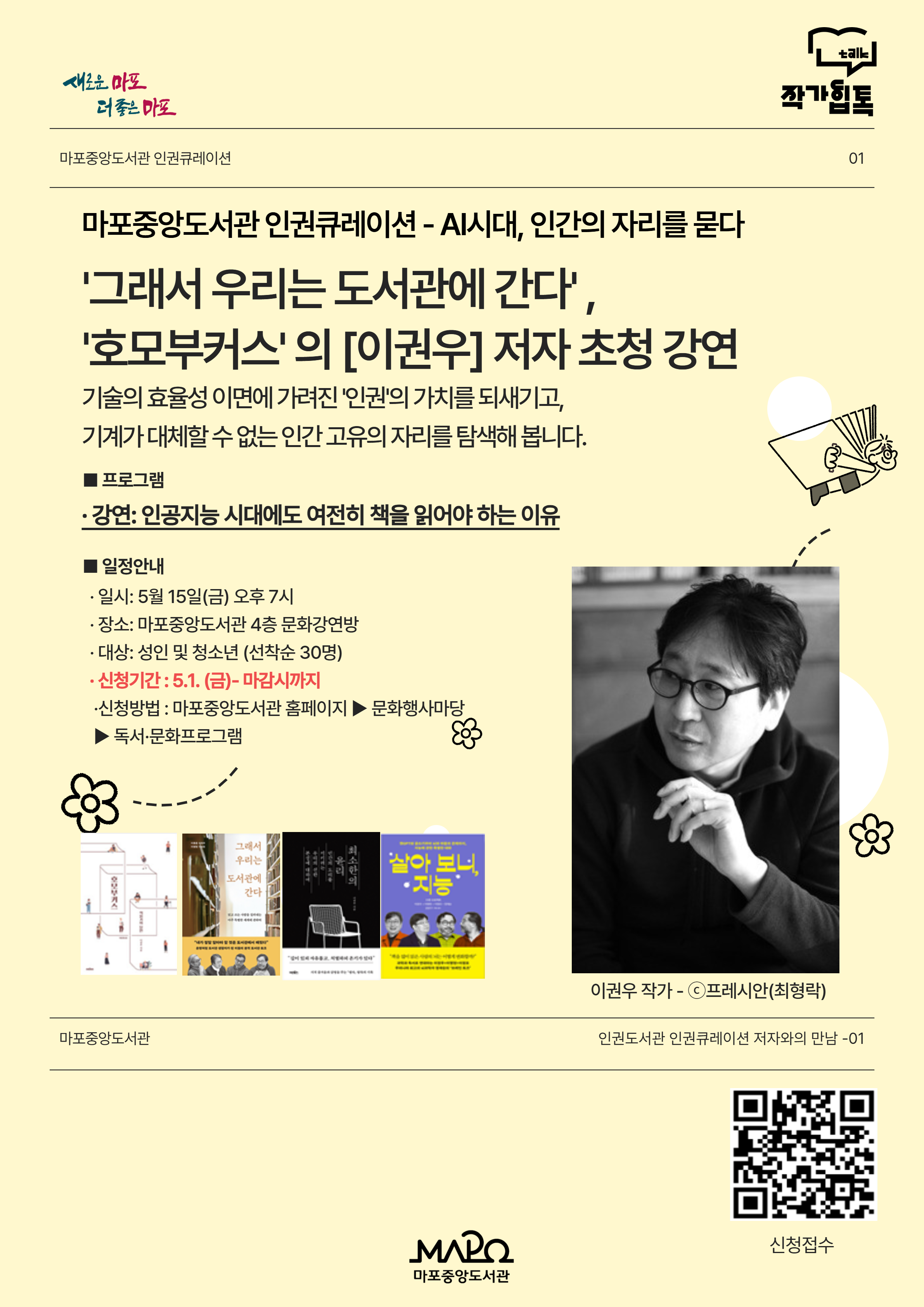 '그래서 우리는 도서관에 간다' , '호모부커스' 이권우 저자 초청 강연
