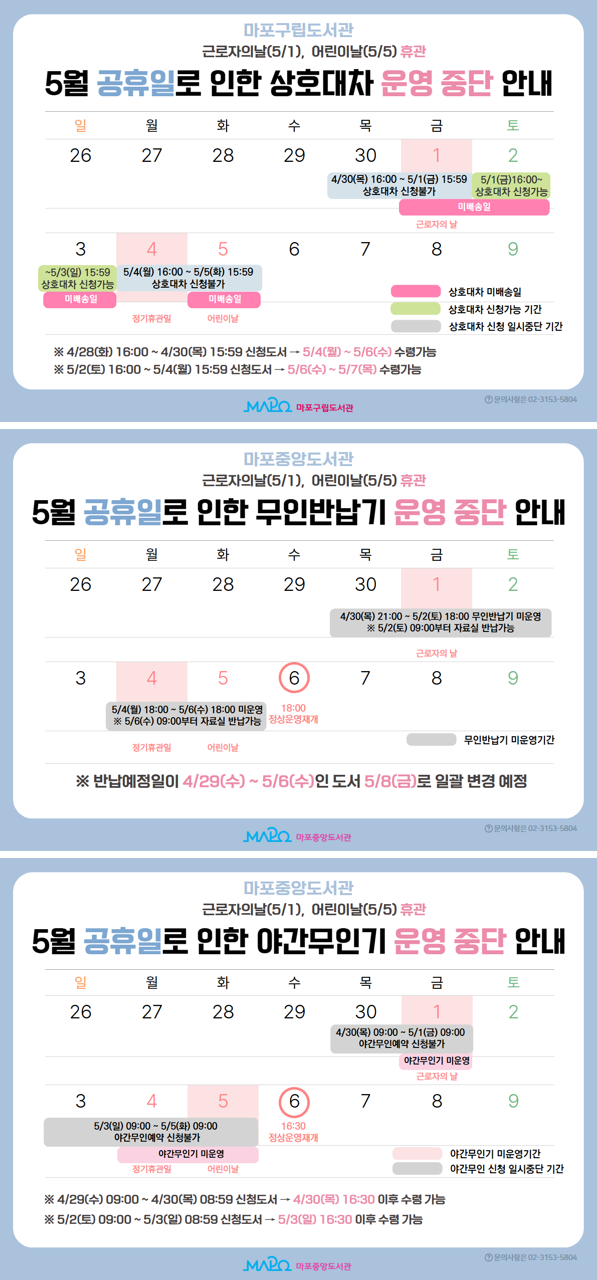 - 5/6(수) 09:00부터 자료실 반납 가능