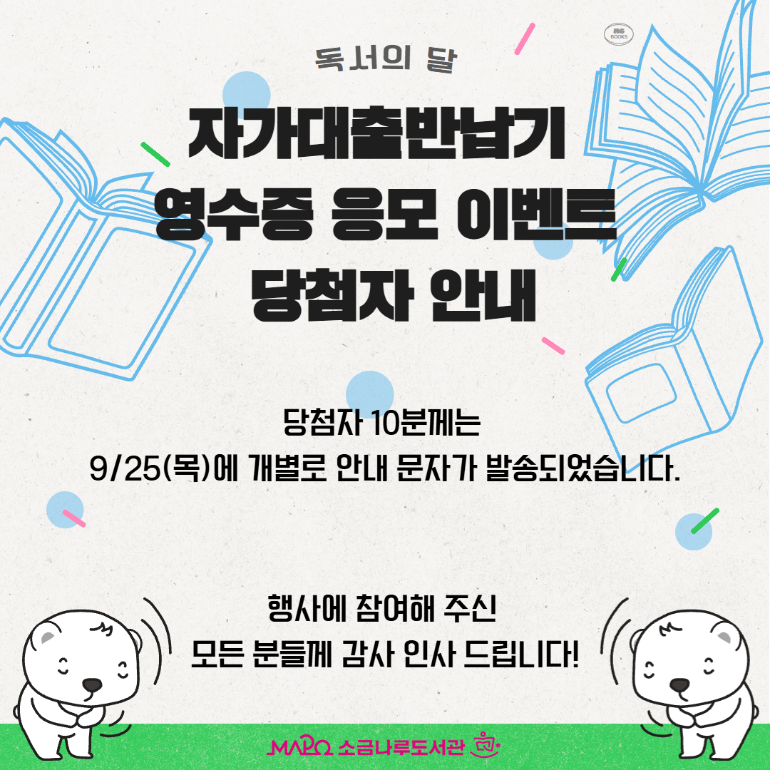 자가대출반납기 영수증 응모 이벤트 당첨자 안내