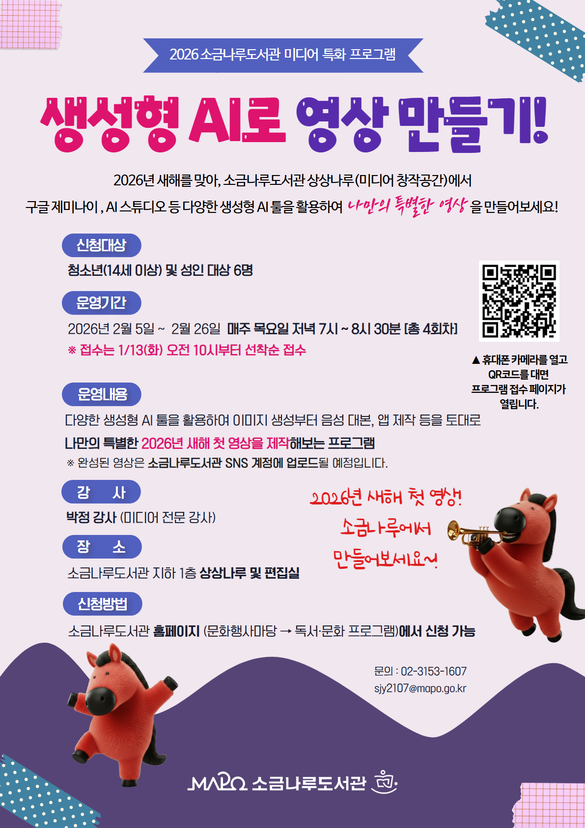 2026년 새해를 맞아, 소금나루도서관 상상나루(미디어 창작공간)에서 나만의 특별한 영상 을 만들어보세요!