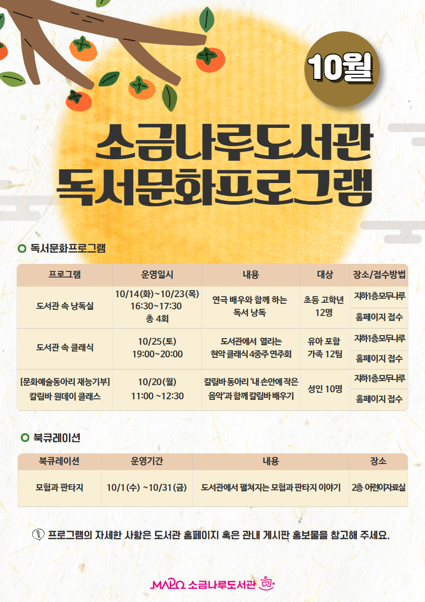 제목 | 2025년 10월 소금나루도서관 프로그램 안내 |