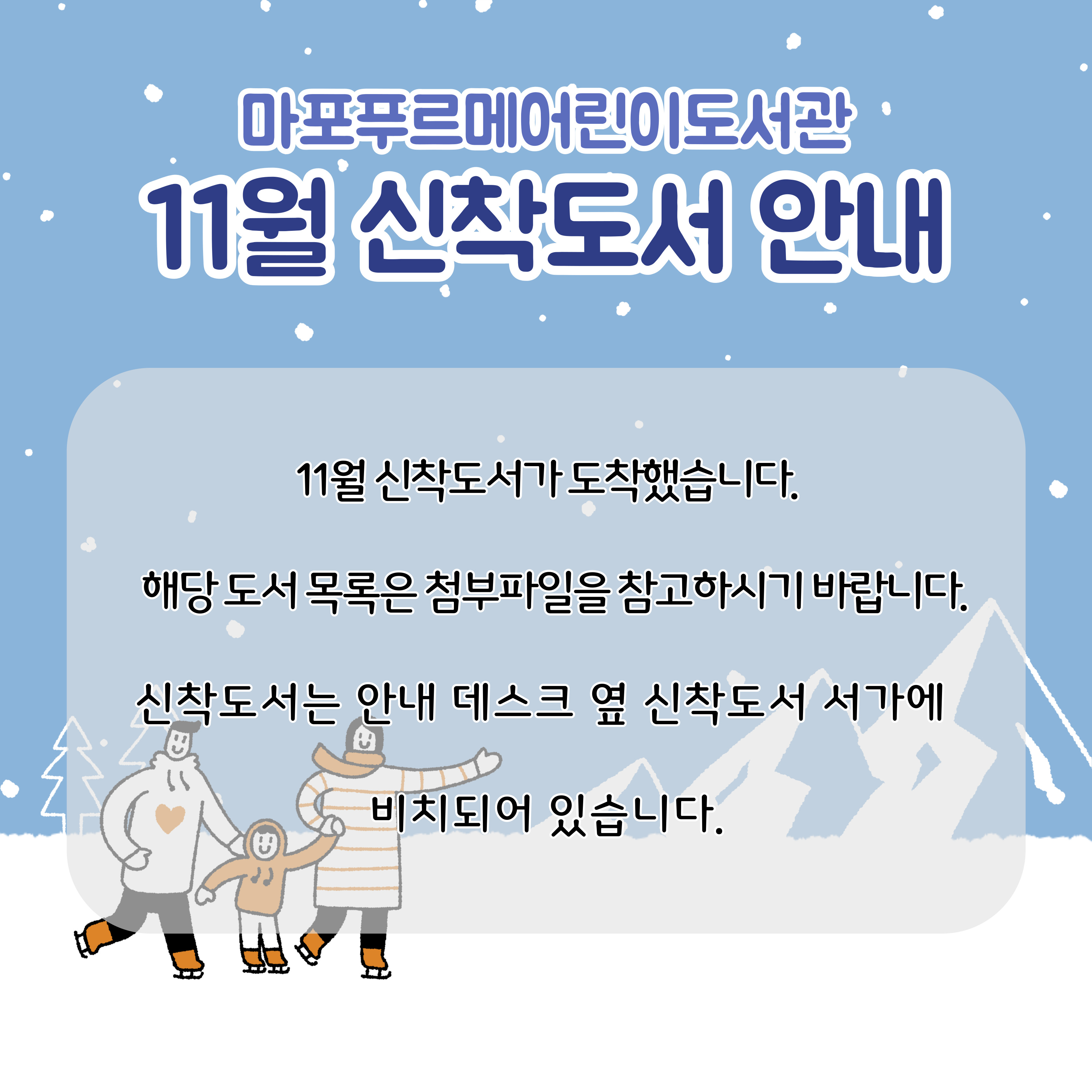 신착도서는 데스크 옆 신착도서 서가에 비치되어 있습니다.