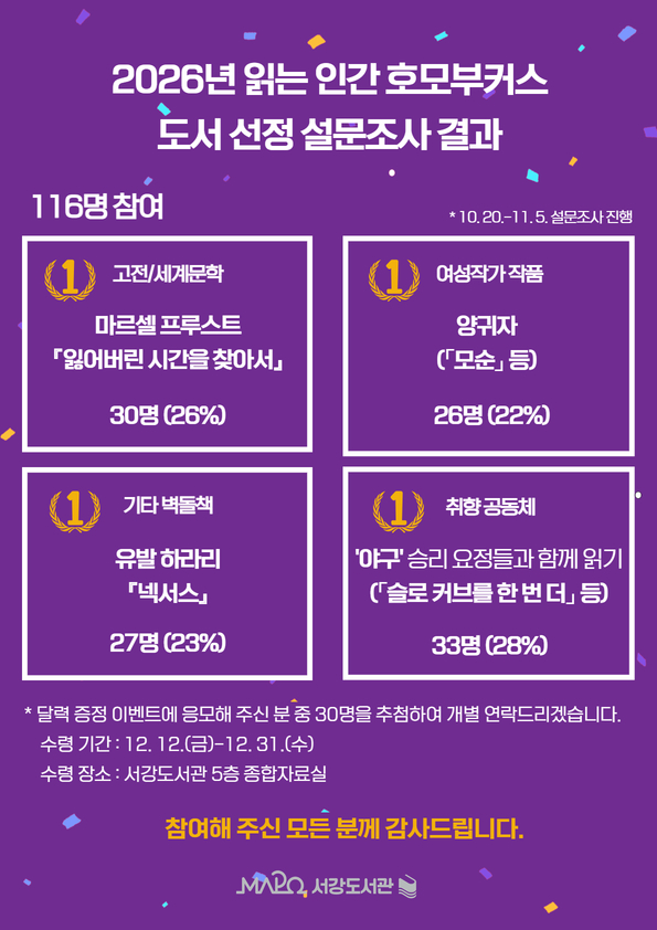 2026년 읽는 인간 호모부커스 도서 선정 설문조사 결과