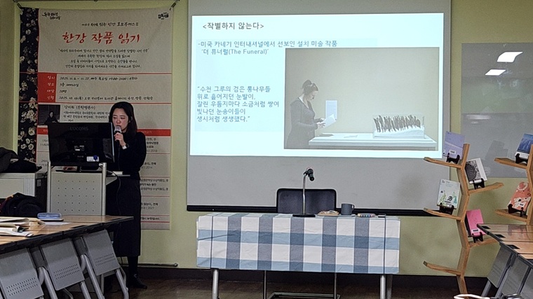 서강도서관 ‘읽는 인간 호모부커스’ 세 번째 벽돌책은 한강 작품 읽기였습니다.