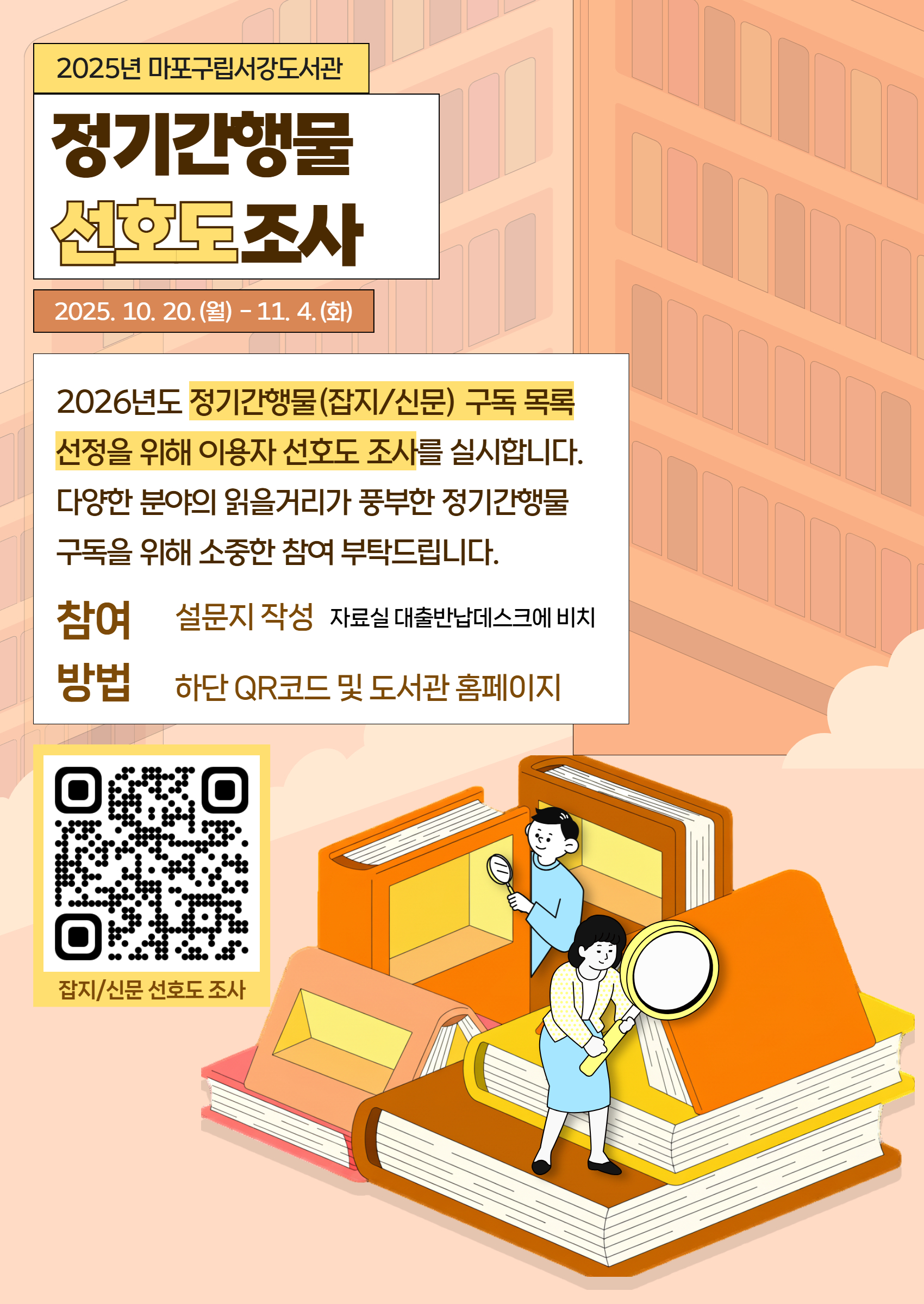 ☞ 2026년 정기간행물 구독목록 반영을 위한 선호도 조사 실시