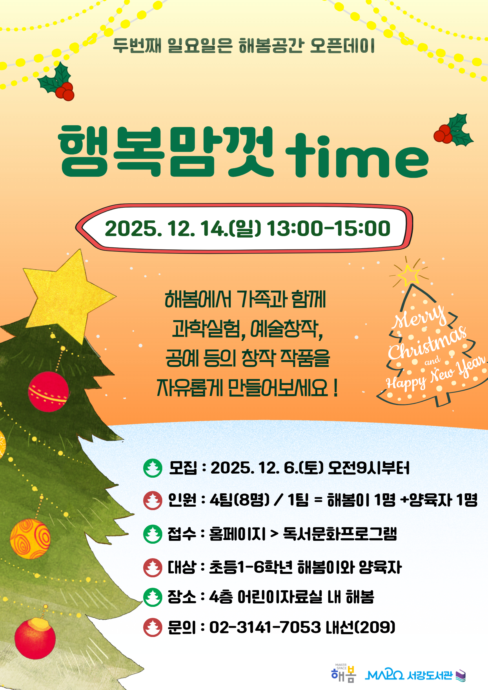 두 번째 일요일은 해봄공간 오픈데이 행복맘껏time 2025. 12. 14.(일) 13:00-15:00